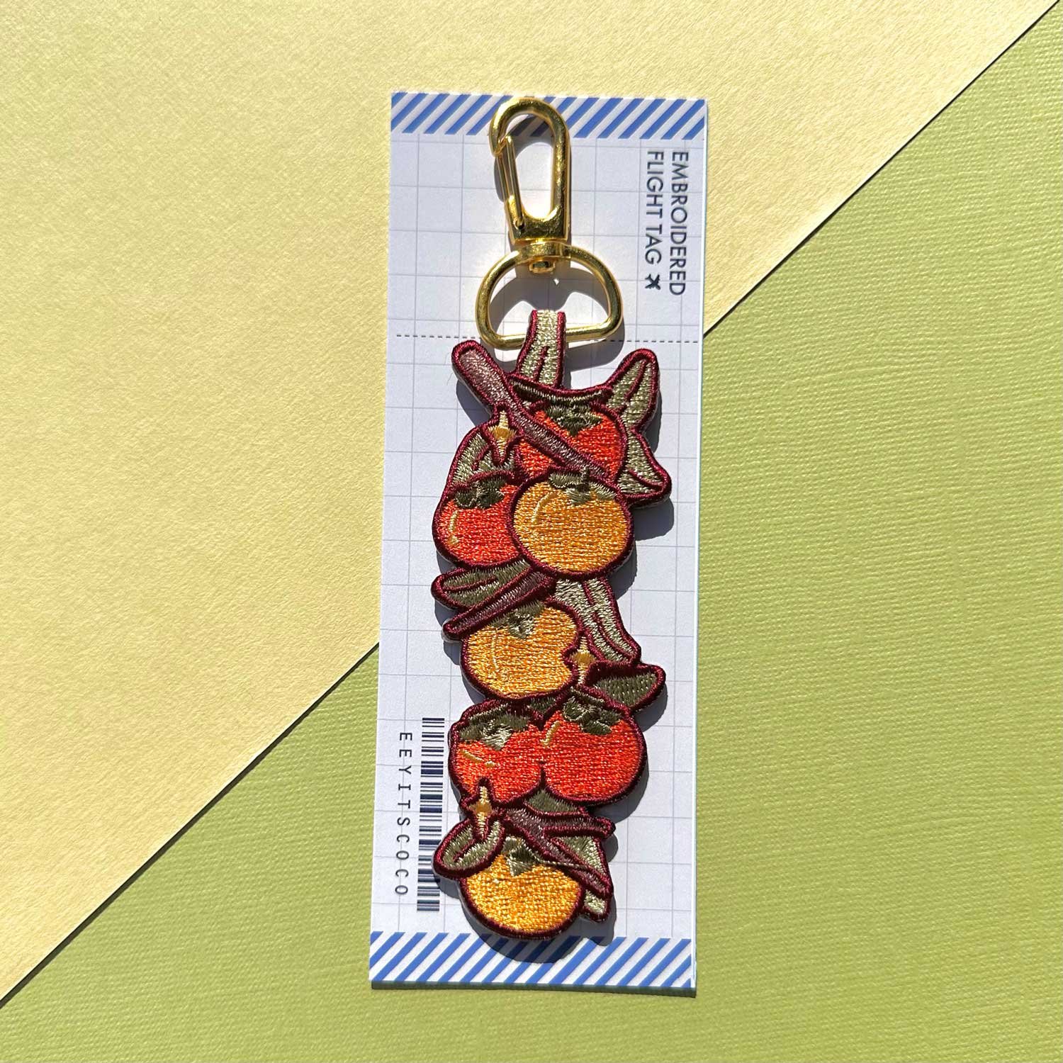 May fortune, longevity and prosperity be on your side with this double sided embroidered persimmons flight tag!