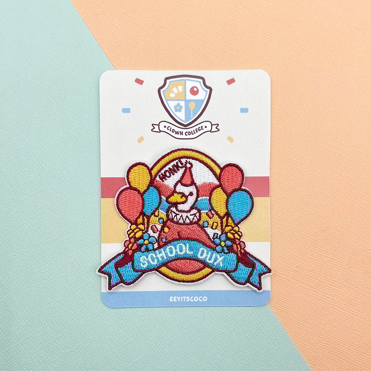 Show that you’re all for the clownery with this iron-on embroidered patch!